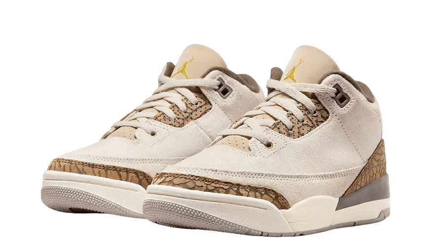 The Air Jordan 3 Retro GS “Palomino” DM0967-102 features a unique blend of colors, officially labeled as “Light Orewood Brown/Metallic Gold/Light British Tan/Palomino.” Catering to older children, this edition revitalizes the beloved Jordan 3 silhouette, incorporating refreshed materials in understated, earthy tones. The upper is expertly crafted from smooth white leather, emanating a delightful rustic and organic ambiance.