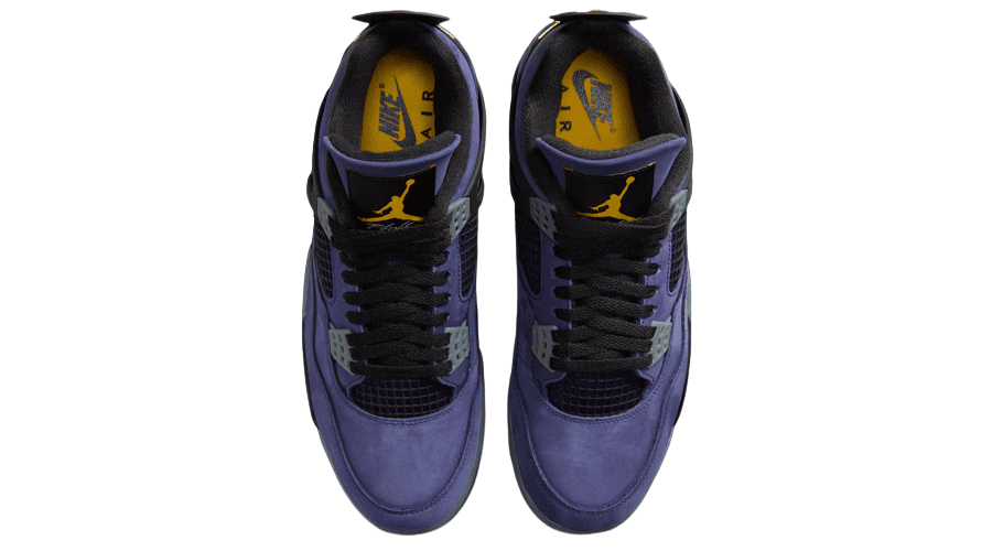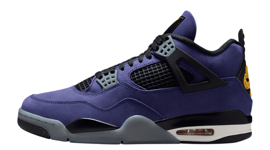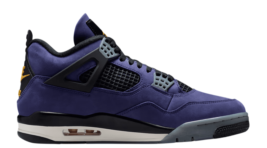 Originally introduced in 1989, the Air Jordan 4 changed the game with its visible Air cushioning, mesh panels, and plastic wing eyelets. It crossed from hardwood to street without missing a step. This “Lakers” colourway taps into that crossover appeal.