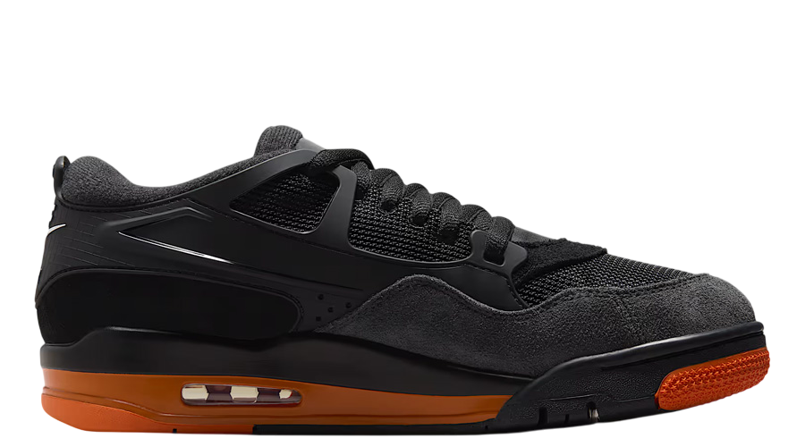 What really sets this one apart? That updated cage system. It blends classic AJ4 design cues like the eyestay and heel tab into a flexible wraparound structure. It’s less rigid than the original, giving the silhouette a bit more fluidity—and a more laid-back, skate-park-ready profile.