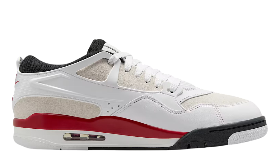 The Air Jordan 4 RM “White Gym Red” reworks a classic in stripped-back fashion, without losing its edge. It swaps in clean white leather on the toe and mid-panel, balanced by muted suede overlays underneath. A translucent white TPU cage sits over the top, modernising the look while keeping the AJ4’s layered build intact.