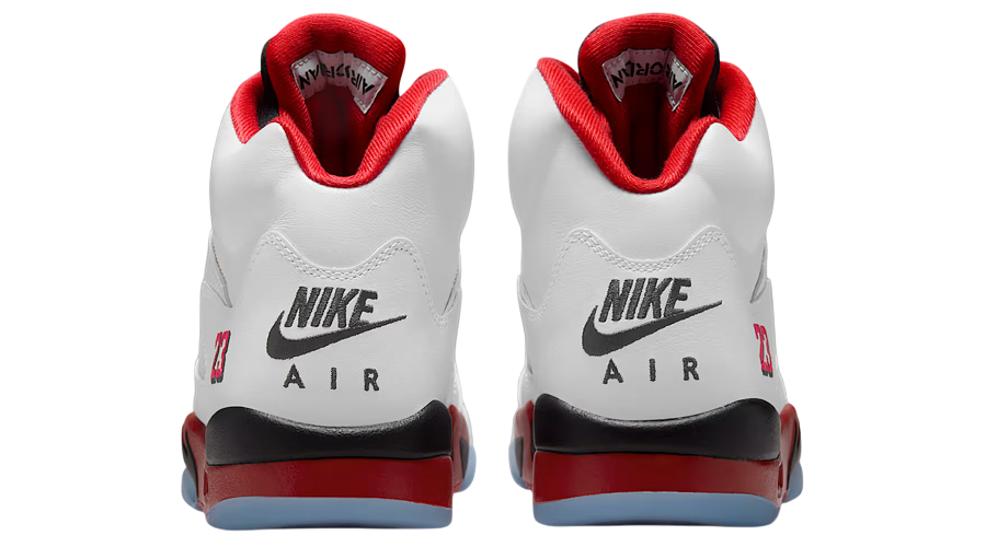 The Air Jordan 5 “Fire Red” makes a celebrated return in 2025, reviving one of the most iconic OG colourways as part of the silhouette’s 35th anniversary lineup. First introduced in 1990, the design remains instantly recognisable with its crisp white leather base, jet-black tongue, and bold varsity red accents. It’s the only original colourway to feature the stitched “23” on the lateral heel, a direct nod to Michael Jordan’s jersey number.