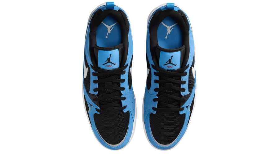 The upper mixes breathable textile panels with structured overlays in real and synthetic leather, delivering a supportive fit without added bulk. Dressed in crisp white and sky blue, the colour palette nods to MJ’s college roots without going full throwback. University Blue hits the collar, heel tab, and outsole, adding a familiar pop that contrasts cleanly against the base.