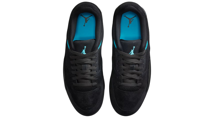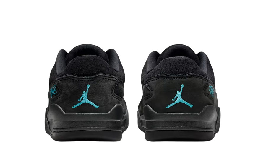 The upper mixes smooth leather, soft suede, and breathable textile panels — a trio that balances durability and comfort. The matte black base keeps things clean and versatile, while bright hits of “Gamma Blue” pop across the midsole, lining, and logos for a look that feels both classic and sharp. Embroidered touches give a subtle nod to Jordan heritage, grounding this new silhouette in familiar territory.