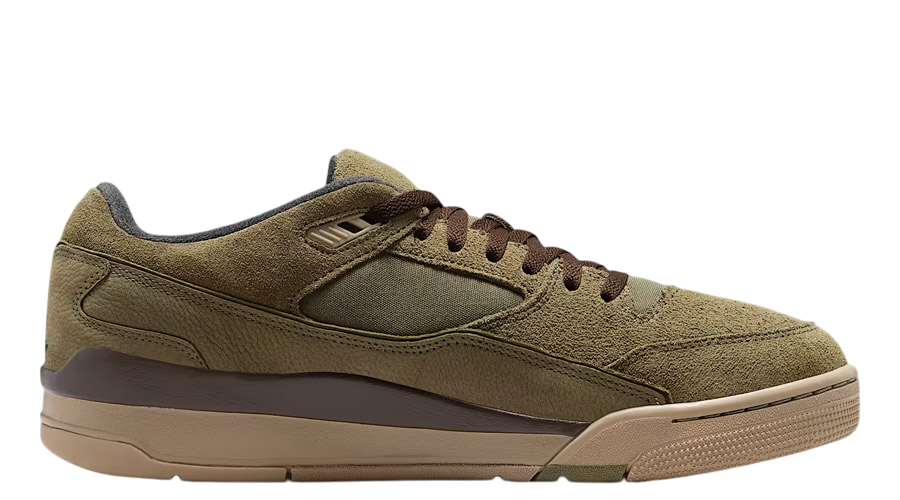 Jordan Brand adds another chapter to its hybrid line with the Air Jordan Flight Court “Khaki”, a sneaker that fuses heritage with modern function. Drawing inspiration from the AJ3, AJ4, and AJ5, the design reworks iconic elements into one versatile silhouette. The upper features a mix of real and synthetic leather for durability, supported by soft suede overlays and breathable textile panels that keep the foot secure without sacrificing comfort.