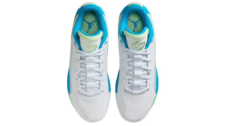 The design doesn’t hold back. Laser Blue dominates the upper, while hits of green and black break it up across the sole and tongue. A compass-inspired logo sits underfoot, nodding to Luka’s no-look movement and precision-based game.