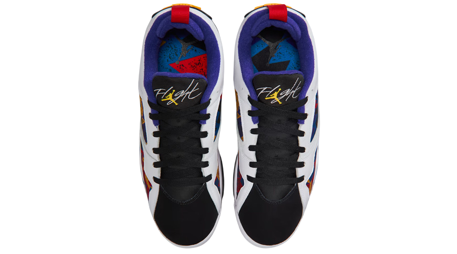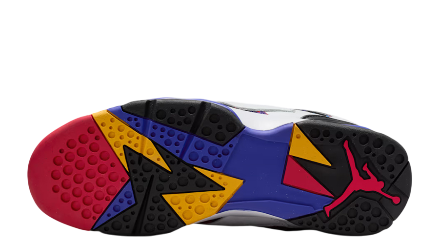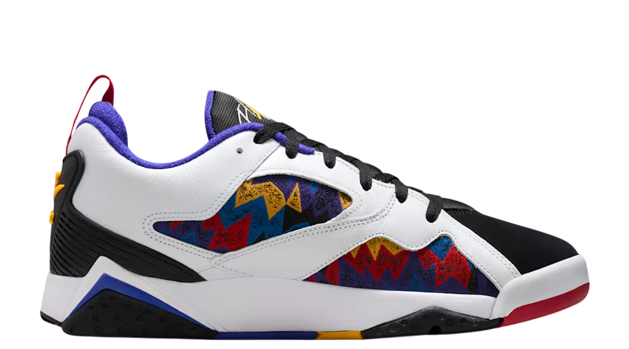 This design pays tribute to that iconic look, featuring the tribal-inspired print from the Air Jordan 7. The mix of bright reds, yellows, blues, and purples bursts across the upper, creating a statement that’s impossible to ignore. It’s a head-turner that carries the legacy of MJ’s confidence and style into today’s streets.