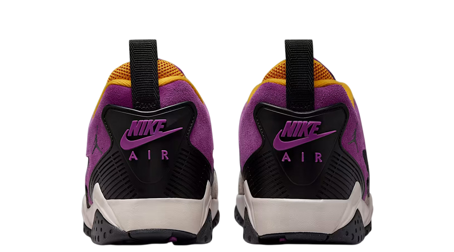 Where the neutral base keeps things understated, the accents push the design in a vibrant direction. “Viotech” purple lands on the heel wrap and tongue branding, instantly catching the eye, while the vivid “Dark Sulfur” lining adds an unexpected splash of colour. Together, these hues balance retro charm with fresh energy, making the pair a standout in any rotation.