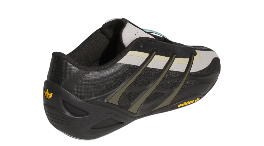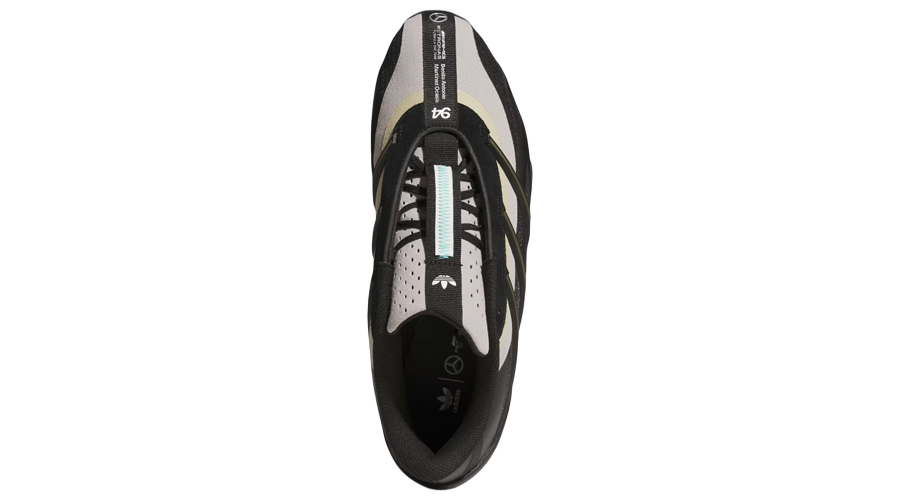 Gold adidas branding nods subtly to the early Adiracer story. Silver touches sit on the tongue and forefoot, adding small flashes that catch light without shouting. Then Bad Bunny jumps in with details that fans will appreciate immediately. The zig-zag stitch in pale blue. The “94” stamped on the toe. And co-branded text linking him to Mercedes-AMG. It feels personal without being loud.