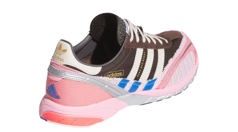 The Bad Bunny x adidas Adizero SL72 “Brown Clear Pink” builds on the momentum of the 2024 SL72 revival, blending retro running DNA with the bold personality of Benito’s collaborations. First revealed in Puerto Rico, the sneaker arrives as part of the continuing partnership that has reshaped adidas Originals’ presence in recent years.