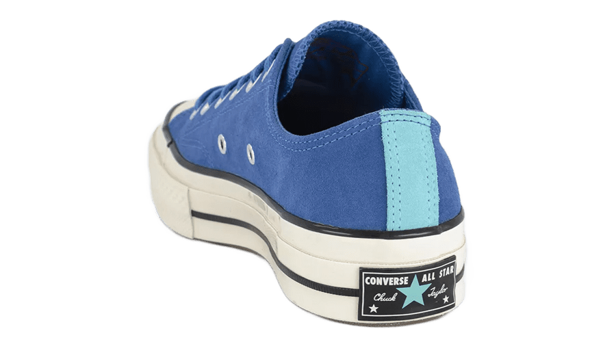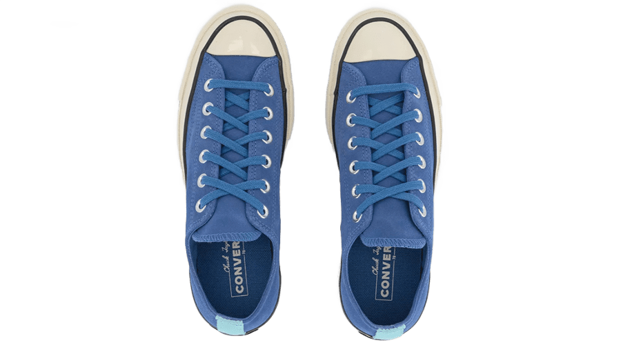 At first glance, the “Ancestral Blue” hue catches the eye, offering a bold yet versatile look. This colour choice is ideal for those who want to add a pop of color to their outfit without overwhelming it. The sneaker’s low-cut silhouette maintains the classic Chuck 70 design, ensuring a familiar yet refreshed style.