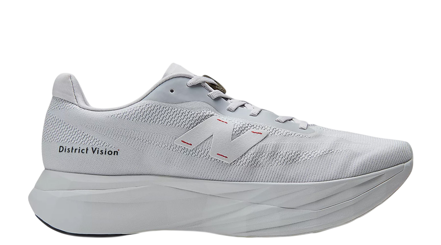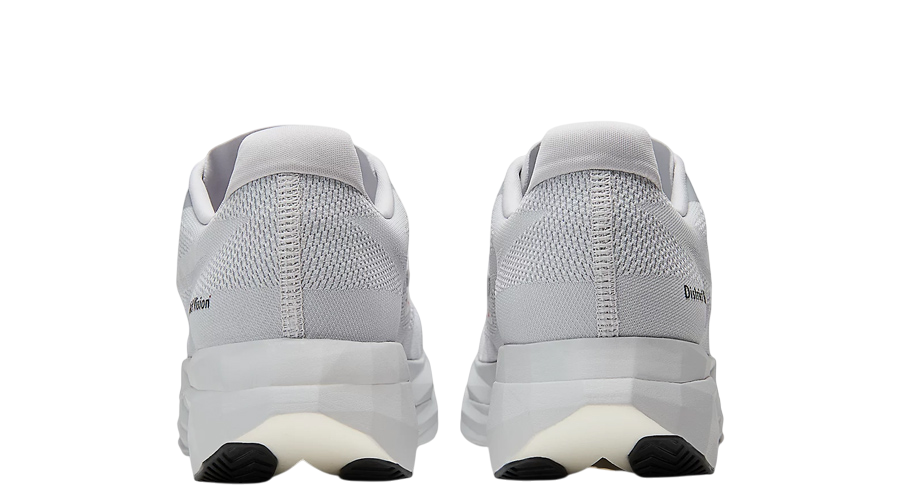 The District Vision x New Balance SC Elite V5 “Pearl Grey” comes through with a calm, earthy tone that fits the collab’s style. The palette stays soft. The textures do the talking. Suede hits along the lateral “N” and tongue bring a warm touch, backed by red bar tack stitching that gives the shoe a subtle spark. You’ll also catch a single red stitch at the heel — a small detail tied to classic Japanese finishing methods.