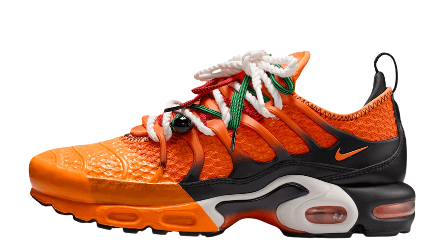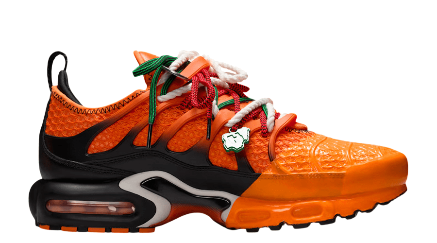The Homecoming Festival x Nike Air Max Plus “Safety Orange Black Bright Mandarin” captures the feeling of sunrise in Lagos. Bright. Warm. Full of movement. This take on the Nike Air Max Plus pushes colour and storytelling to the front, while keeping the silhouette’s street legacy intact.