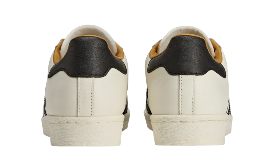 The upper features off-white leather, delivering a sleek, minimal look. Contrasting black serrated 3-Stripes and heel tabs add a nod to the OG design, keeping things classic while maintaining a modern edge. The rubber shell toe, a defining element of the Superstar, reinforces structure while staying true to the sneaker’s court heritage. Gold branding on the lateral sidewall provides a subtle yet sophisticated accent, while the co-branded Ortholite sockliner adds a touch of exclusivity.