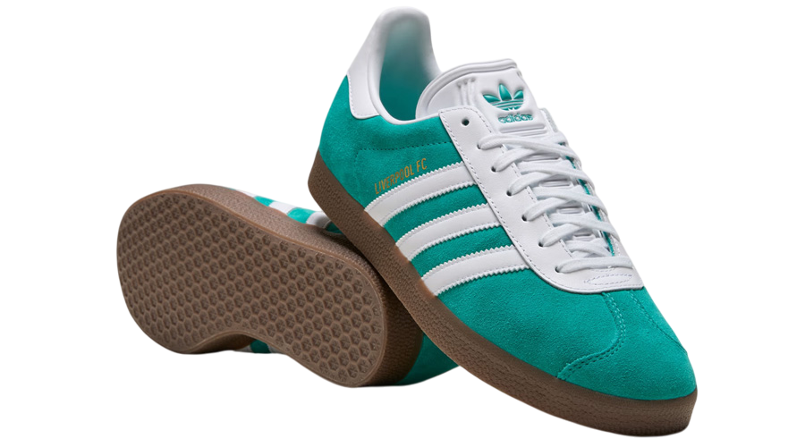 Crafted with a soft suede build, moulded tongue, and the Gazelle’s signature T-toe overlay, the design stays true to its football DNA. Inside, co-branded sockliners connect adidas’ archive terrace style with Liverpool’s modern presence. Underfoot, the gum rubber cupsole features hexagonal traction patterns, giving reliable grip whether worn to the match, on the streets, or during everyday use.
