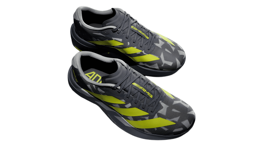 Visually, the “Aurora Onix” colourway stands out without going overboard. Dark grey tones dominate the base, while Acid Yellow accents add sharp contrast inspired by motorsport detailing. Subtle branding ties back to the performance roots of Mercedes-AMG, giving the pair a distinct edge.