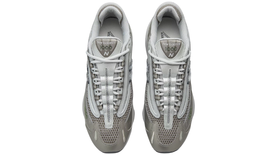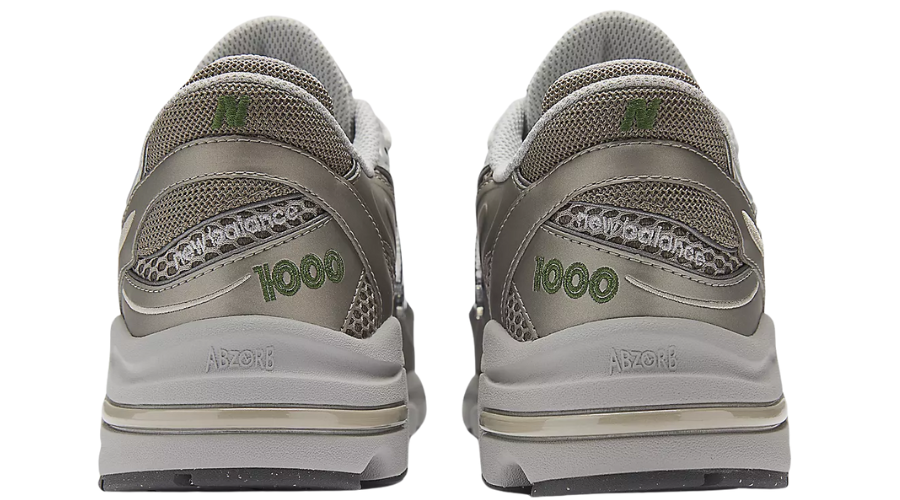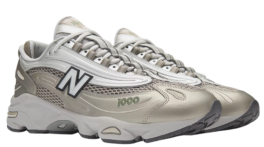 The New Balance 1000 “Arid Stone” doesn’t follow the usual grey formula. This colourway lands with a tan and grey mix, sharpened by metallic silver overlays and subtle green accents. It’s a clean take that leans into outdoor energy without going full trail shoe.
