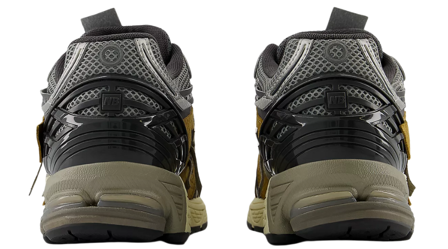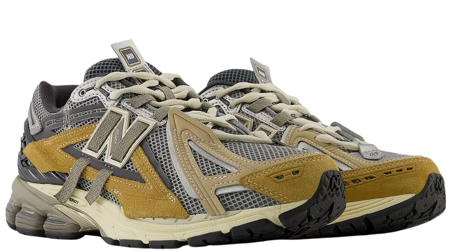 Tan suede overlays wrap around the upper, giving the shoe a textured, broken-in feel. The taupe NLOCK logo integrates seamlessly, reinforcing structure while keeping the natural theme intact. Underneath, grey mesh panels introduce contrast, adding breathability without disrupting the earthy palette.