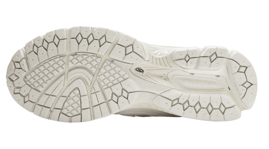 Crafted with breathable, bright white suede, the upper of the shoe ensures optimal comfort. It also features subtle off-white suede accents for an added touch of elegance. Notably, the midfoot area incorporates an innovative NLOCK system seamlessly integrated into the iconic “N” logo. This unique feature, forming part of the lacing setup, delivers enhanced stability and support to your foot, making every step a confident stride.