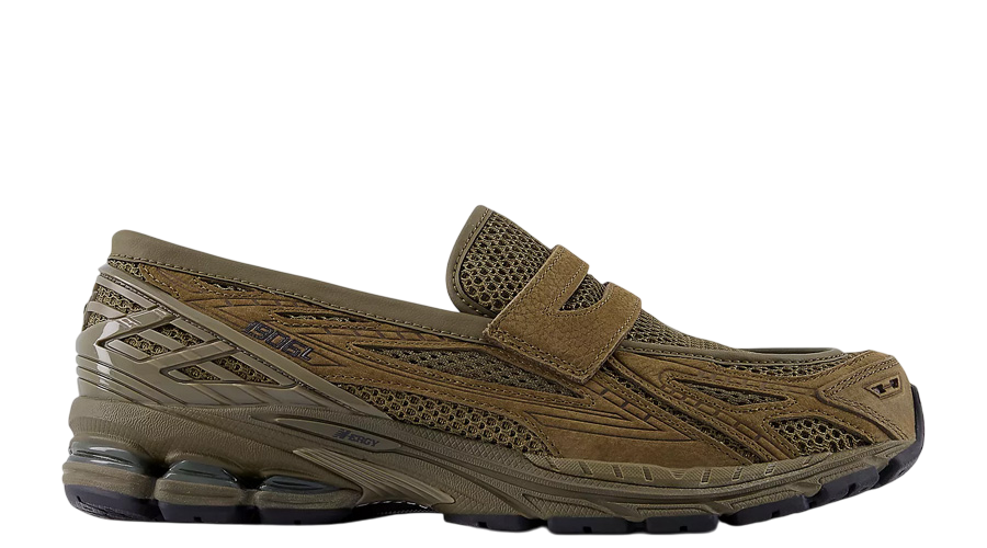 Despite the slip-on silhouette, the shoe doesn’t compromise on comfort. It rides on the same ABZORB SBS midsole tech found on the 860v2, with segmented heel pods that cushion each step. This model leans heavily into formality without shedding its sporty backbone. From the monochrome upper to the loafer shape, the 1906L “Olive” feels like it belongs in both work wardrobes and casual settings.