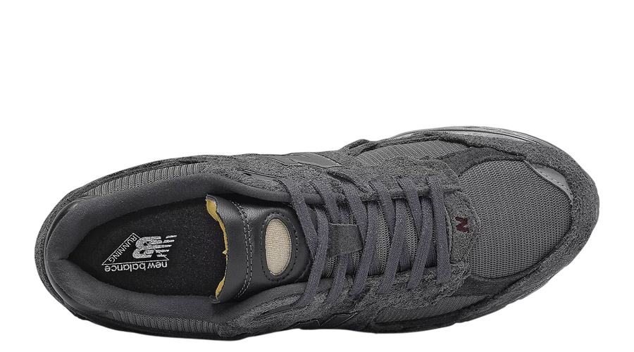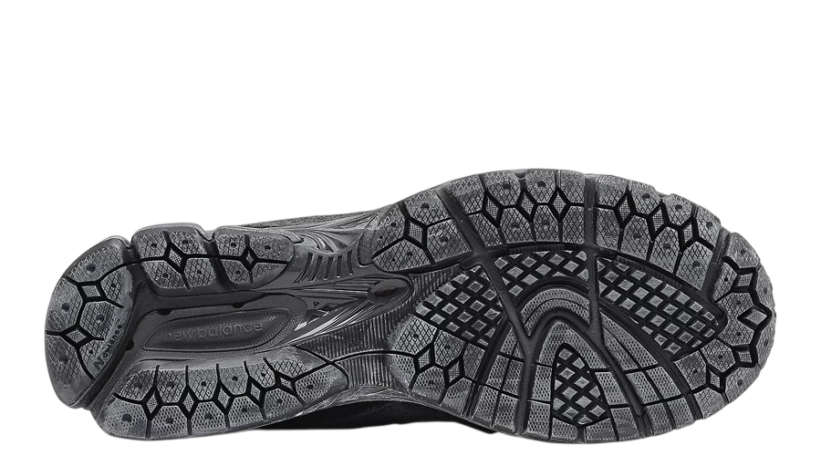 The upper layers suede over mesh, offering a raw-edged finish that’s become signature to the Protection Pack line. The jagged panels add depth and texture, while the all-black “Phantom” colourway keeps things understated. There’s a balance of durability and breathability that makes this pair as wearable as it is distinctive.
