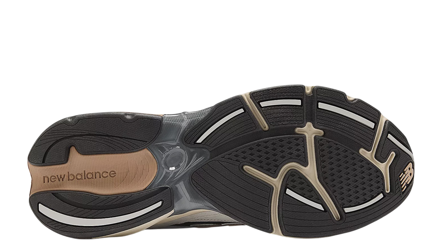 Underfoot, a chunky foam midsole delivers lasting comfort, built around New Balance’s segmented ABZORB sole unit. This tech, known from several 2000s-era favourites, returns here with exaggerated proportions that make it as much a design feature as a cushioning system. Enlarged ABZORB SBS pods at the heel further soften each step, providing impact absorption whether worn casually or on longer days out.