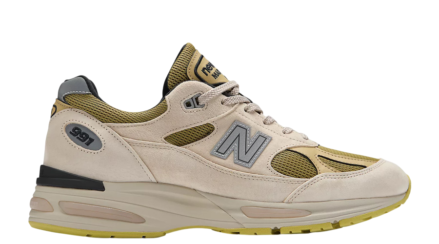 Underfoot, the familiar 991v2 midsole returns with refined ABZORB cushioning, offering reliable support and comfort for long wear. Pops of hi-vis green and darker tones along the sole bring life to the understated upper, creating balance without overcomplicating the design. It’s the kind of colour story that feels purposeful, with every shade earning its place.