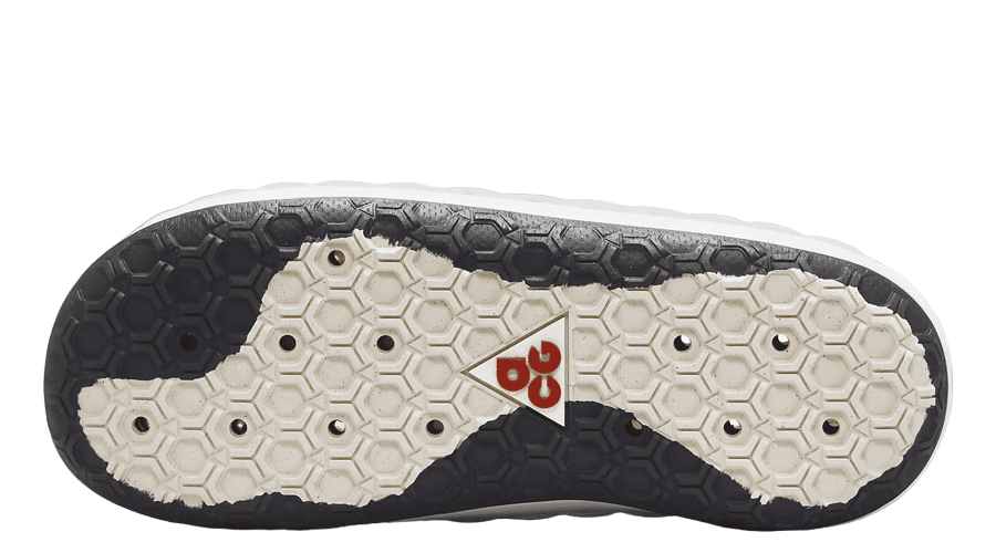 The shoe’s woven upper consists of loosely knit cords, offering durability and comfort whether you wear socks or not. Its pull tabs, crafted from the same cord material, blend smoothly with the shoe’s body, creating a streamlined appearance. The drop-in midsole contributes to a sandal-like feel while securely holding your foot in place. The sticky rubber outsole ensures traction across varied terrains, from rocky areas to urban streets. It comes in a Phantom/Summit White/Dark Russet/Light Orewood Brown colourway and features ACG logos.