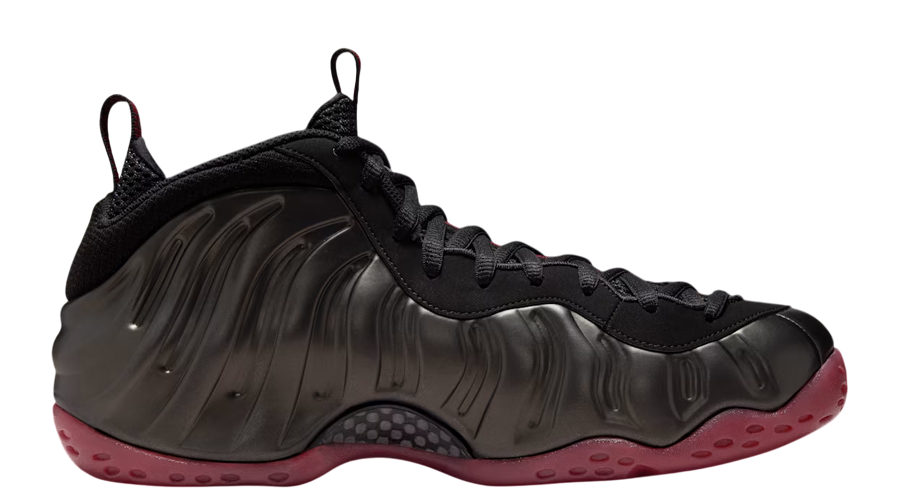 The Nike Air Foamposite One “Cough Drop” 2025 revives one of the most talked-about Foamposite colourways, bringing back its signature mix of heritage and attitude. Staying true to its roots, the shoe features a deep black Foam shell contrasted with the fan-favourite red translucent outsole — a detail that sets it apart from the matte red samples teased in past previews.