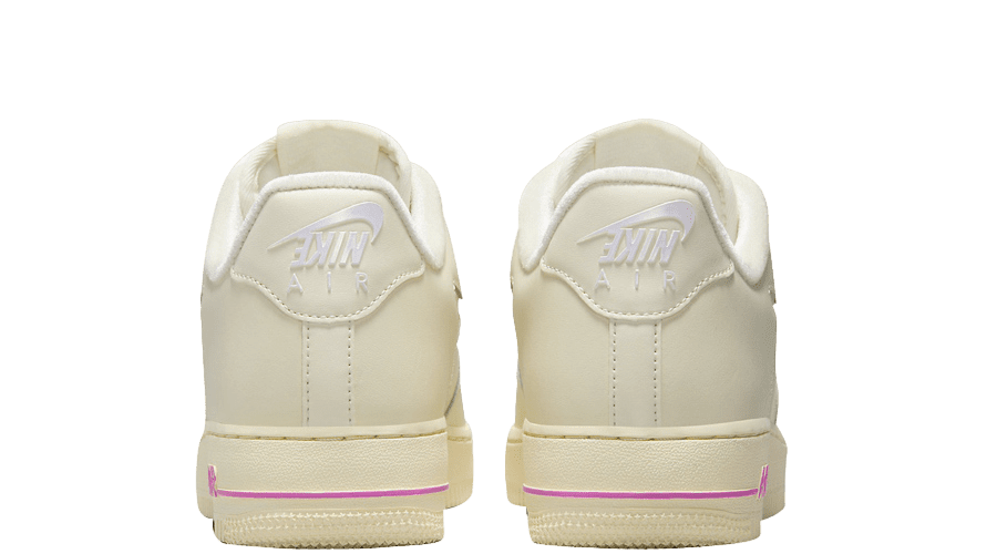 Adding a playful twist to this sophisticated design are the accents of Playful Pink. These are strategically placed on the mini Swooshes on the side panels, on the insoles, and notably, on the “AIR” branding on the midsoles. The sneaker also features unique “JUST DO IT” lace dubraes, bringing an element of fun and vibrancy to the overall look. This playful contrast provides a striking balance against the shoe’s predominantly neutral palette.