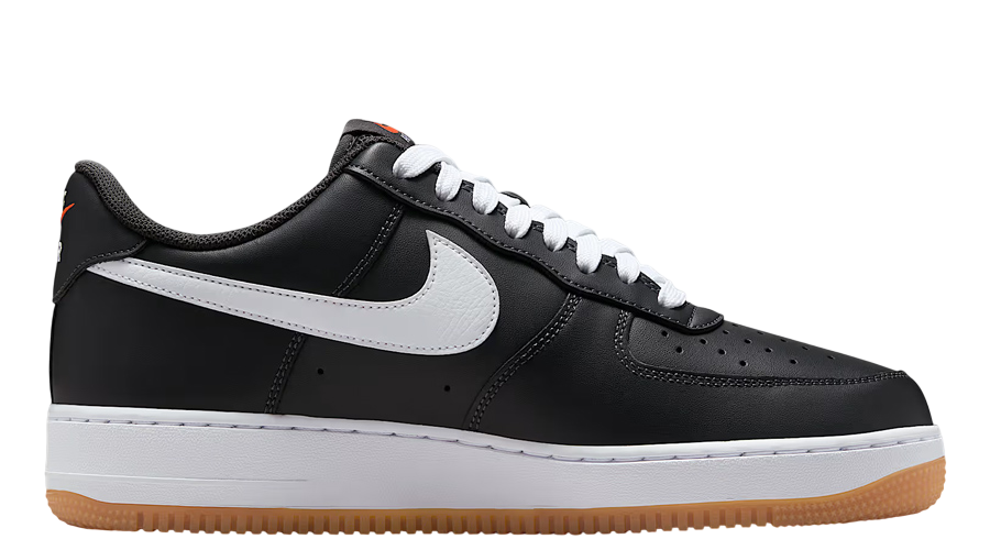The Nike Air Force 1 ’07 LV8 “Anthracite Gum” keeps things sharp and straightforward. It’s a familiar formula—black leather upper, crisp white Swooshes, and a gum rubber outsole—but it’s done with just enough tweaks to stand apart.