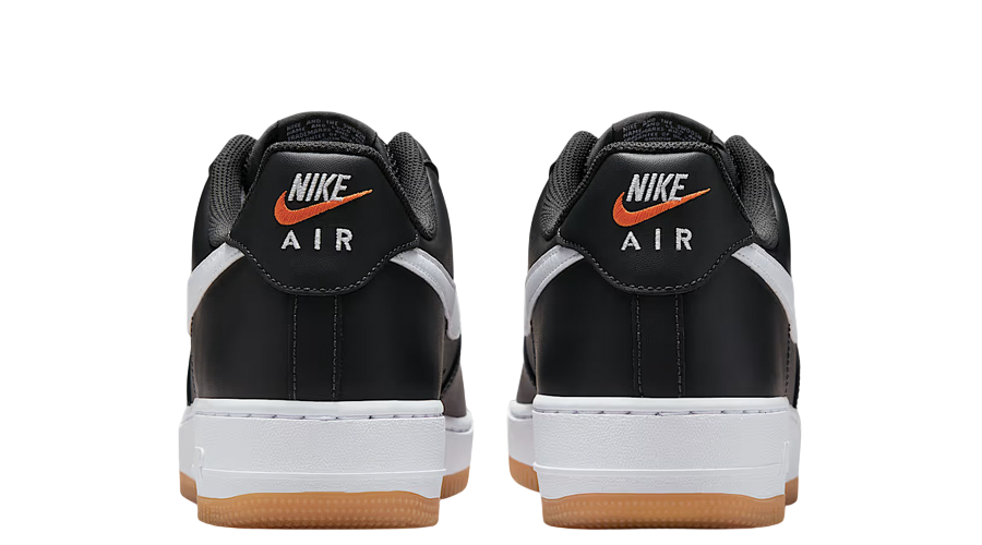 You’ll notice the clean white midsole slicing through the dark upper, giving the shoe a balanced contrast. The heel tab switches things up with a black leather overlay, accented by bright orange Nike embroidery. It’s a small hit of colour, but it makes a difference. This design cue is a subtle nod to past grail releases while keeping the look fresh for today.