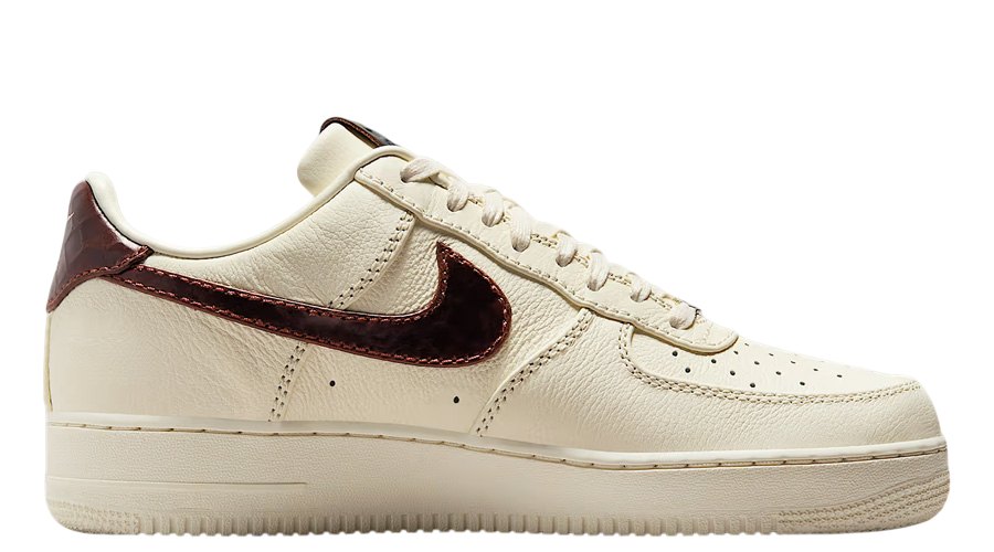 The Nike Air Force 1 ’07 “Soft Pearl Brown Croc” brings together classic basketball DNA and premium textures with an aged, street-ready edge. While brown leather isn’t new to the Air Force 1, this version goes deeper — the upper features a slightly burnished treatment that gives the shoe a worn-in warmth, rich with depth and subtle variation in tone.
