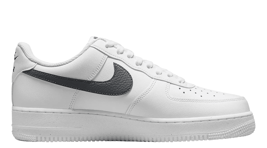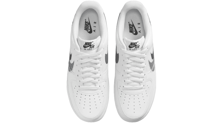 The design maintains the iconic Air Force 1 aesthetic with its timeless shape and solid white AF1 rubber sole. However, it’s the subtle details that set this edition apart. The midsole reveals minor speckled details, echoing the spray paint theme and adding an element of visual interest. On the medial side, a grey tumbled leather Swoosh contrasts with the white backdrop, offering a more textured and tactile appeal.