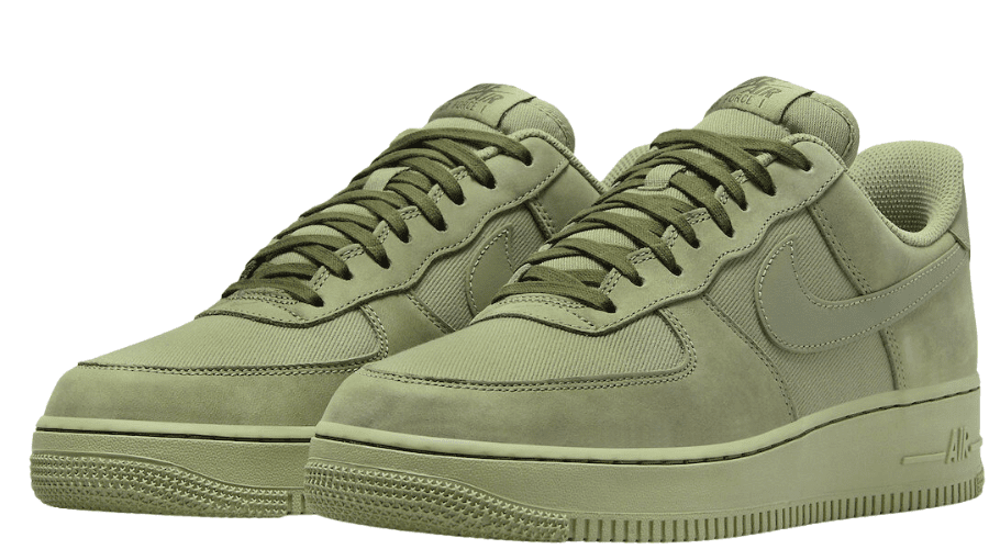 Nike introduces a premium iteration of the Air Force 1 Low, draped entirely in an appealing Oil Green hue. This fresh colorway not only offers a visual treat but also brings a material upgrade to the iconic model.