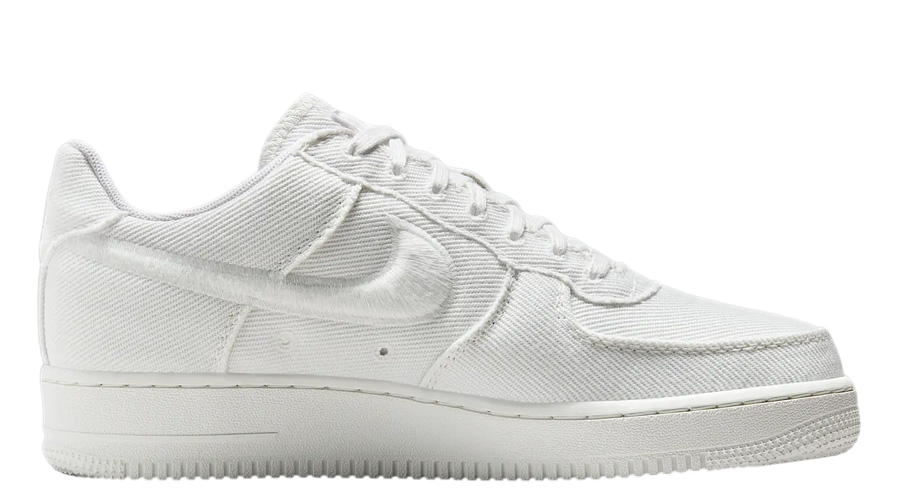 This edition replaces traditional leather with an all-white canvas upper. It feels airy, looks clean, and suits everything from spring shorts to autumn layers. Nike pairs that with a matching chenille Swoosh—a fuzzy detail that adds subtle contrast while still keeping things tonal. It feels classic but new, without shouting for attention.