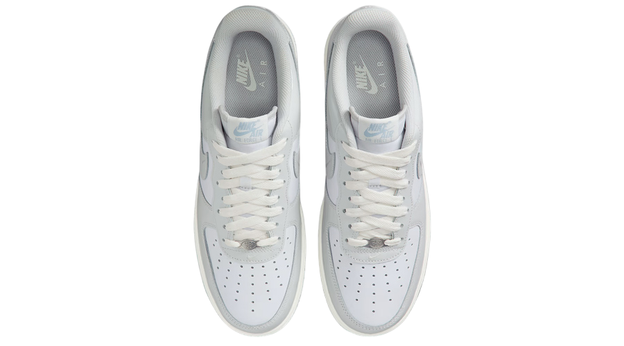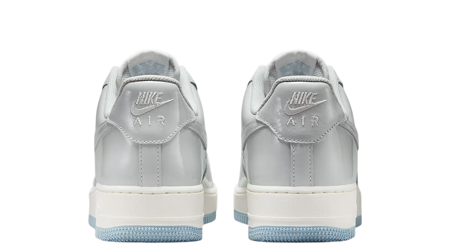 Starting with a clean white leather base, the upper sticks to tradition. The leather is smooth and structured, bringing that familiar Air Force 1 feel we’ve all grown to trust. But Nike switches gears slightly with glossy grey overlays in “Photon Dust.” The finish isn’t flashy, but it adds texture and a quiet level of detail that sneakerheads will appreciate.