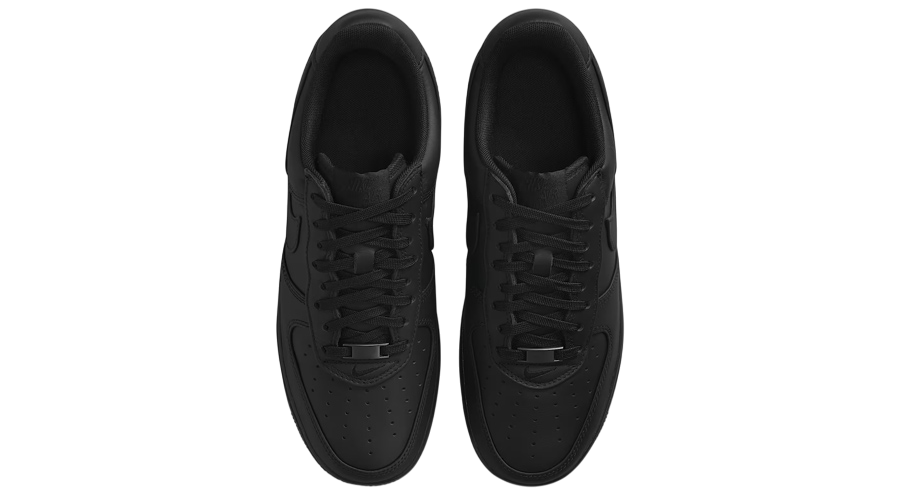 Crafted in supple black leather, the upper feels plush while maintaining the sturdiness expected from the AF1 line. Branding is stripped back in places, creating a cleaner, more minimal look. The heel cup arrives bare, while the lace dubrae switches to a matte finish, giving the shoe a quieter but more elevated edge. These small adjustments add depth without disrupting the iconic silhouette.