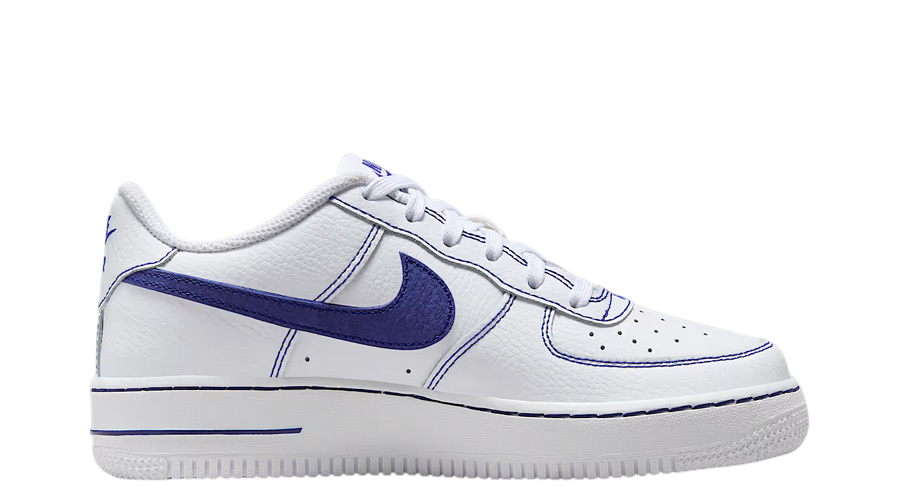 The Nike Air Force 1 LV8 GS “White Deep Royal Blue” is a fresh take on one of Nike’s most iconic silhouettes. This version keeps the spirit of the original alive while adding a touch of bold colour that sets it apart. The upper comes in premium white leather, offering a crisp, clean base that’s built for everyday durability. Whether paired with denim or joggers, this colourway fits right in, making it a versatile choice for both the court and the street.