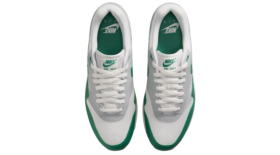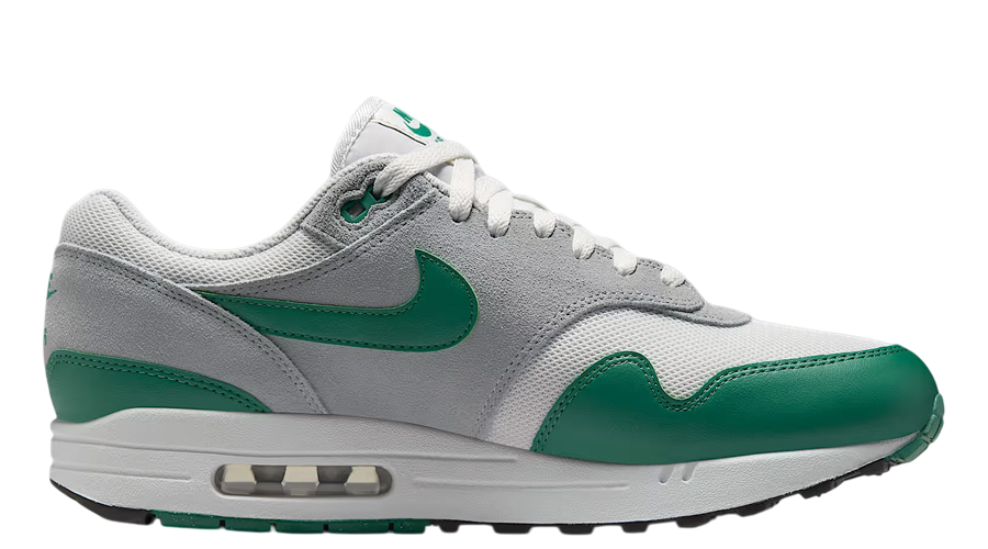 The Air Max 1 “Evergreen Aura” shifts a familiar story just enough to feel fresh. It pulls from the original “Sport Red” and “Game Royal” blueprint, swapping in subtle mint green accents across the Swoosh, mudguard, and heel. That quiet switch changes the mood entirely. The colour still nods to heritage, but with a softer, almost springlike feel that makes this pair an easy pick for the warmer months.