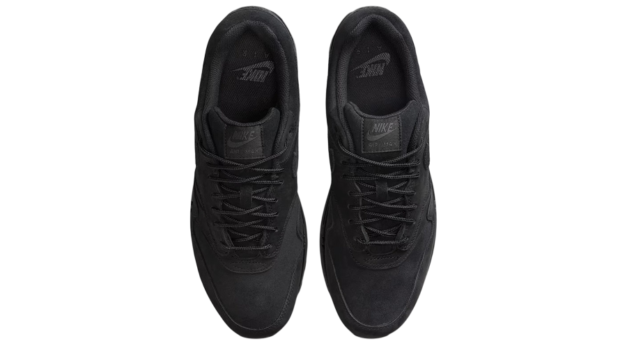 The Nike Air Max 1 Premium “Black Cat” takes a legendary silhouette and drenches it in head-to-toe darkness. Every panel, from the heel through to the toe box, comes cloaked in deep black suede, giving the shoe a sleek and moody finish. While last year’s version drew attention with a tinted Air bubble, this edition shifts the focus with a fully translucent, untinted unit under the heel. That small detail changes the balance, letting the premium material upgrades stand at the forefront.