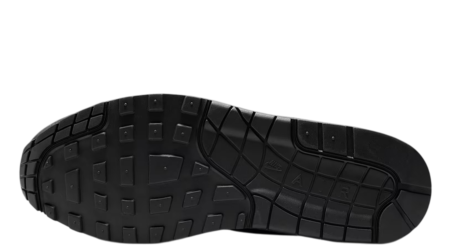 Underfoot, the visible Max Air unit continues to provide lightweight comfort and everyday wearability. A blacked-out midsole and outsole keep the theme consistent, while the layered construction that made the Air Max 1 such a classic remains untouched. The result is a shoe that balances its experimental side with respect for the original blueprint.