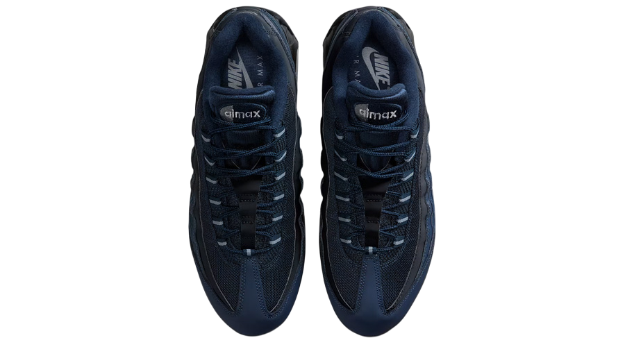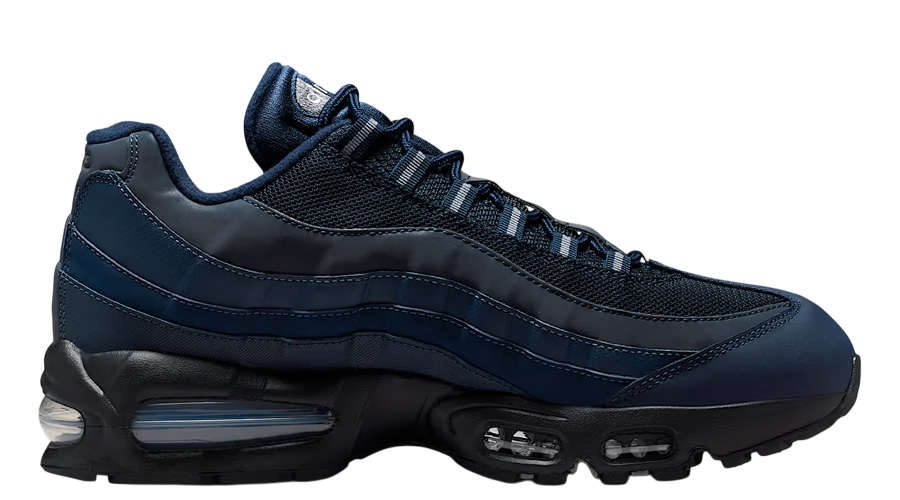 The layered upper combines leather and textile, delivering durability while adding depth to the silhouette’s signature wavy design lines. Hits of Thunder Blue dominate the palette, contrasted with lighter tones for a balanced finish. Lace loops replicate rib-like structures across the top, while gradient panels highlight the anatomical inspiration that has made the AM95 stand out for decades.