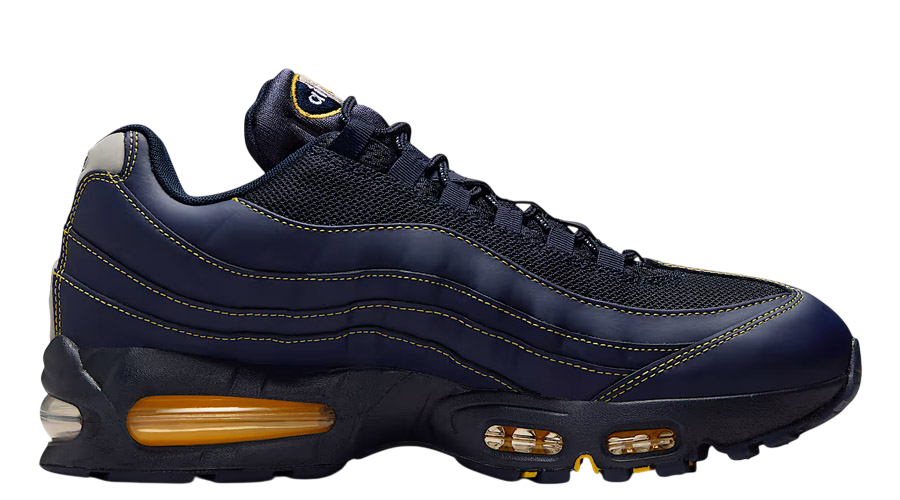 Nike revamps the Air Max 95 with a colourway that nods to the Michigan Wolverines. While it doesn’t arrive as an official collaboration, the mix of navy and yellow brings out strong college athletics vibes, echoing the “World Indigo” release from 2020—but this time with a deeper, bolder palette.