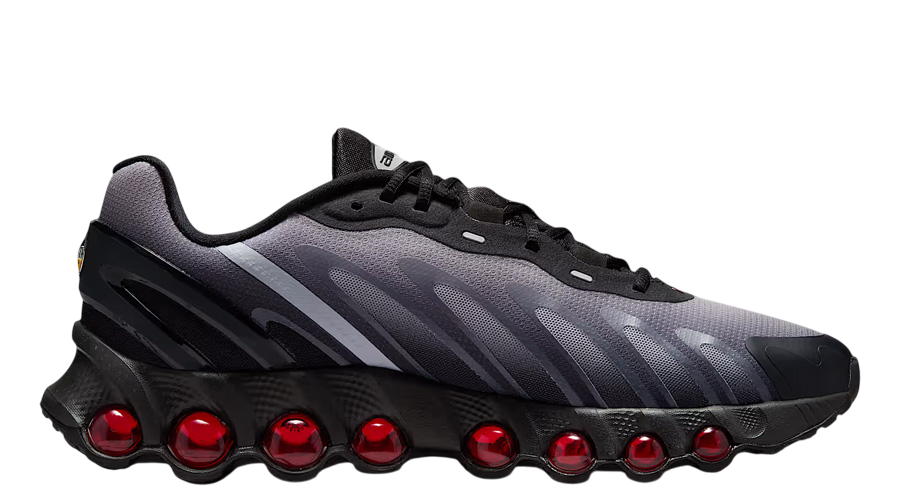 The Nike Air Max Dn8 “Grey/Gym Red” strips back the bulk while turning up the tech. At the centre of it all is the Dynamic Air system—eight pressurised Air tubes that deliver a responsive bounce with every stride. These dual-chambered tubes adjust airflow as you move, shifting pressure for personalised cushioning that keeps your feet energised all day.