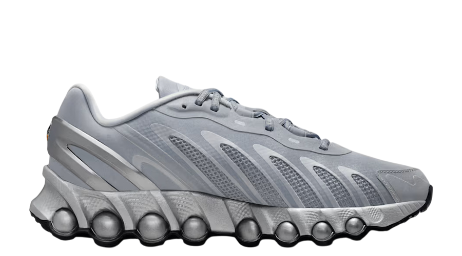 The Nike Air Max DN8 “Metallic Silver” brings a sharp tech feel without overdoing it. The shape is low, clean and easy to wear, but the cushioning system is the real hook. Eight Air tubes run from heel to toe. They sit close to the ground, creating a firm yet lively step that feels smooth in day-to-day use.