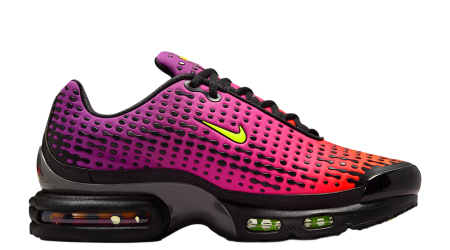 The Nike Air Max Plus 7 “Dusk” lands with a colour story that instantly pulls you in. Orange melts into deep purple across the mesh upper, echoing that quick moment the sky shifts before night takes over. It’s bold. It’s sharp. And it feels made for anyone who likes their TNs loud but still wearable.