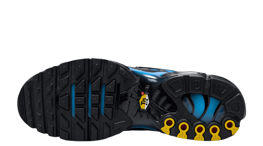 The upper does most of the talking. Crystal Blue fades move across the mesh, flowing from darker to lighter tones with ease. It adds depth without feeling overdone. Black overlays and the signature TPU cage lock everything in, creating that unmistakable Air Max Plus look. Strong contrast. Instantly recognisable.
