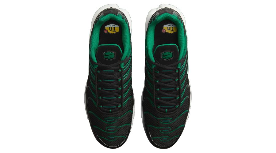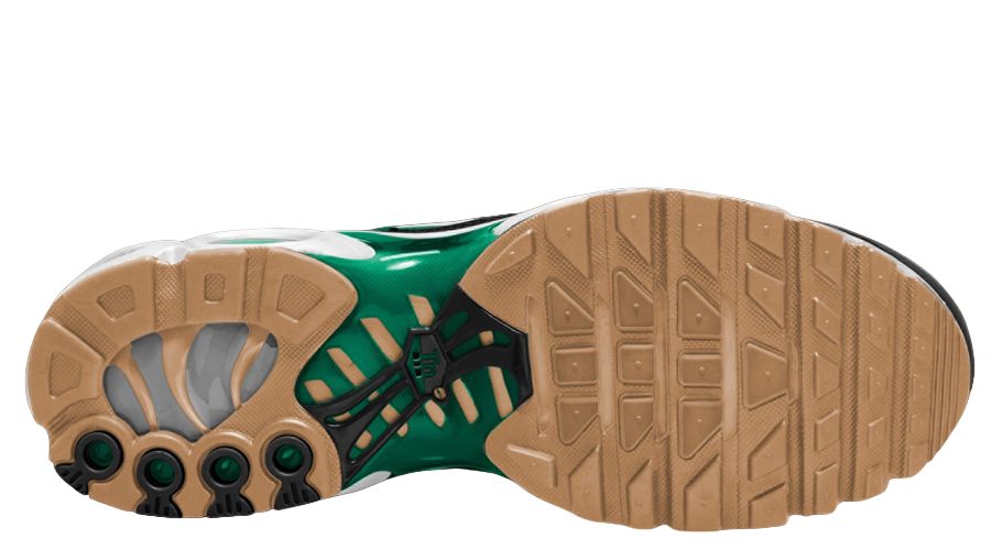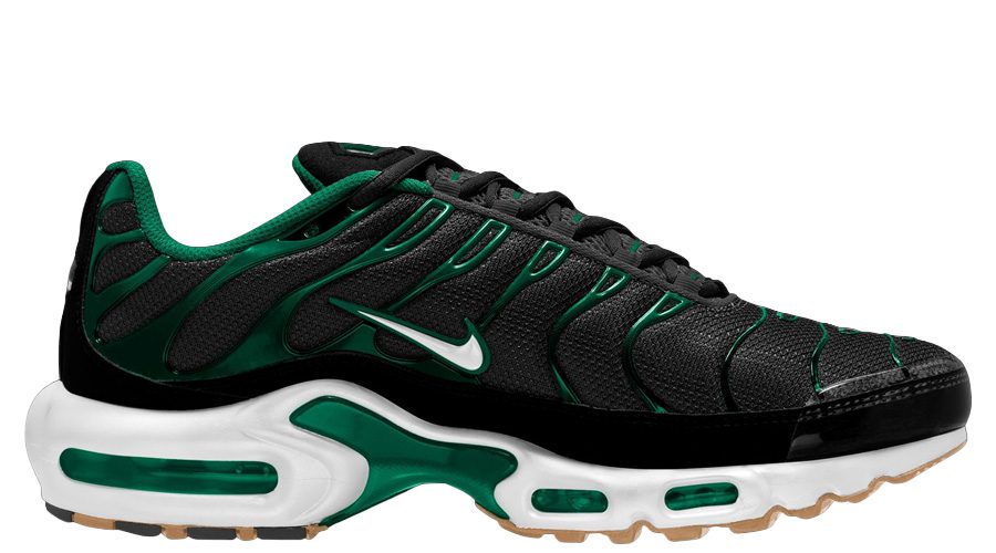 The Nike Air Max Plus “Black Malachite Gum” DM0032-009 brings a dynamic mix of colours. This model’s palette, combining Black, White, Malachite Green, and Gum Light Brown, offers a fresh yet timeless look.
