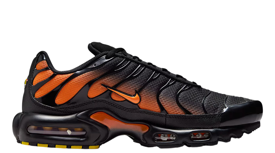 The Nike Air Max Plus “Black Total Orange” brings a bold update to one of Nike’s most iconic late-’90s designs. Known for its aggressive caging and visible Air units, the silhouette has long been a statement shoe, and this colourway amplifies its edge with a sharp mix of black and vibrant orange.