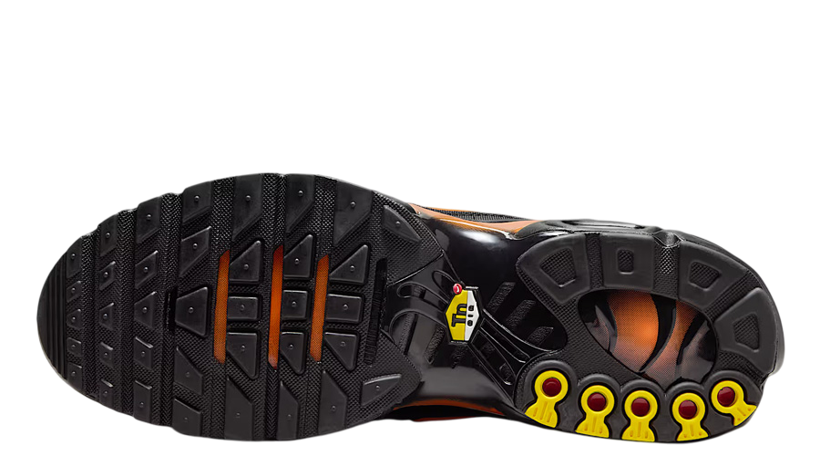 Underfoot, Nike’s Tuned Air cushioning provides responsive comfort and stability. The midsole carries the same distinct design lines that have defined the model since 1998, paired with a durable rubber outsole that grips the ground with ease. From its “Sunset” heritage to this darker, high-contrast take, the Air Max Plus continues to push a mix of style and performance into new territory.